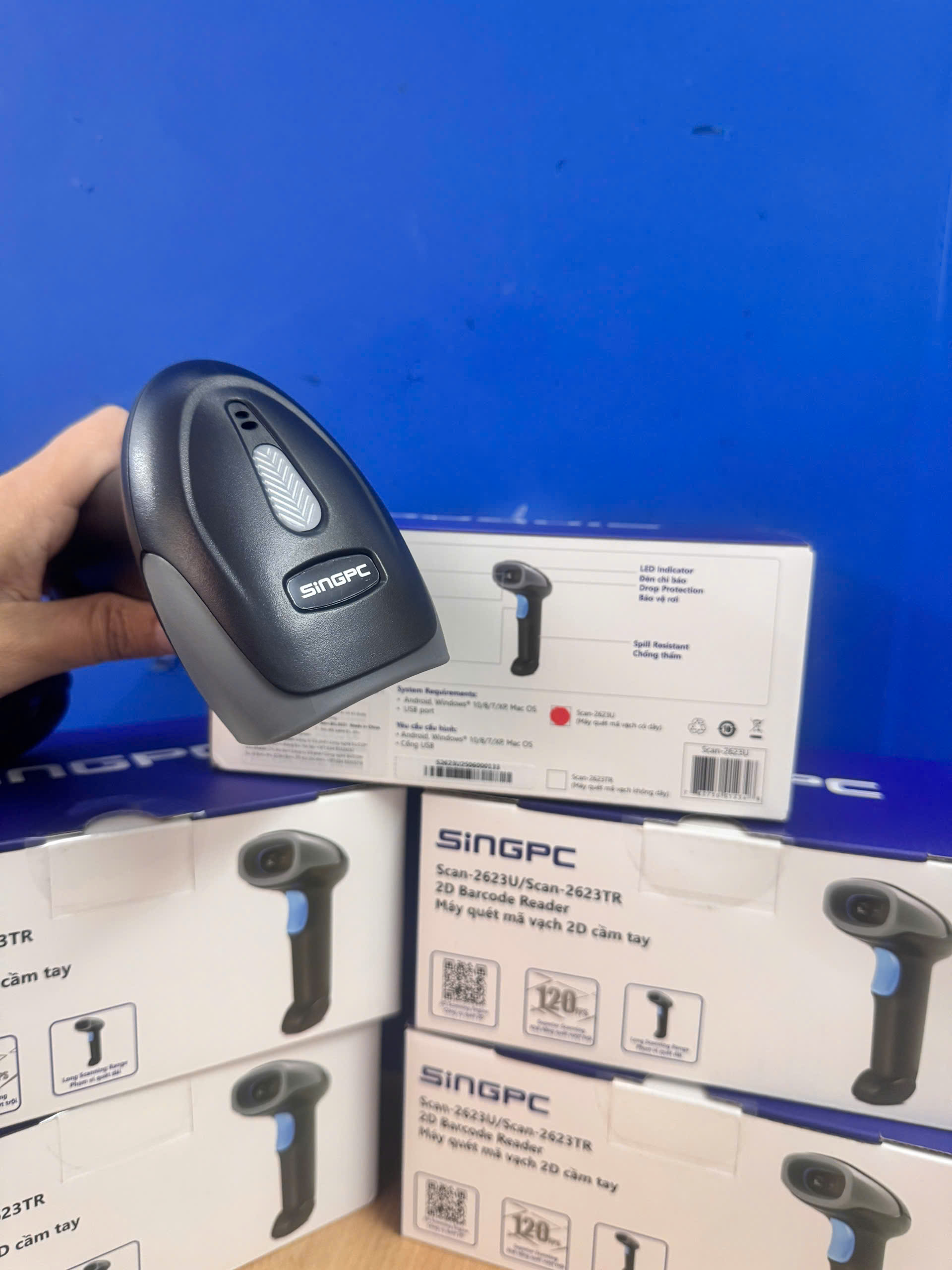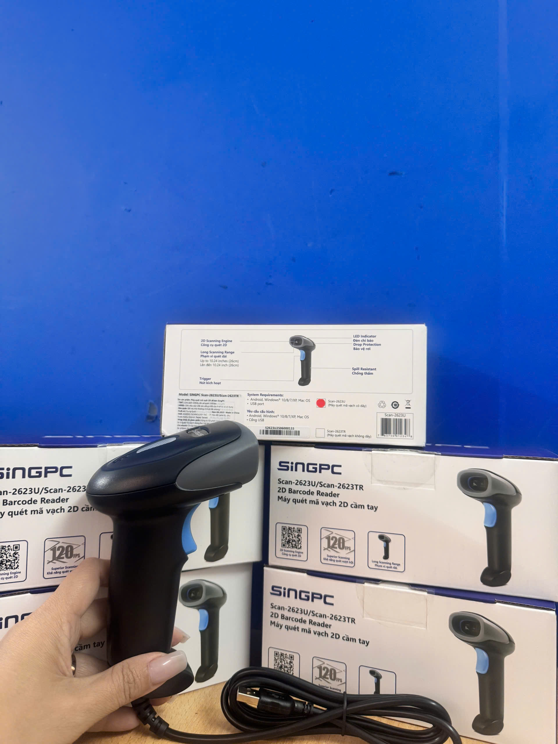 Máy quét mã vạch 2D SingPC Scan 2623U là thiết bị đọc mã vạch cầm tay, thiết kế nhỏ gọn, kết nối USB tiện lợi, cho khả năng quét nhanh và chính xác các loại mã vạch 2D, QR Code trên giấy hoặc màn hình thiết bị điện tử.